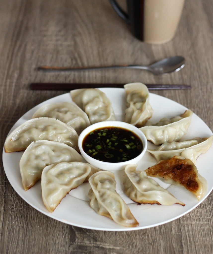 *I can’t say exactly how much salt, pepper, and five spice powder because I eyeball it; everyone’s tastes are different. When in doubt, put less seasoning in the filling and use more dipping sauce later.
