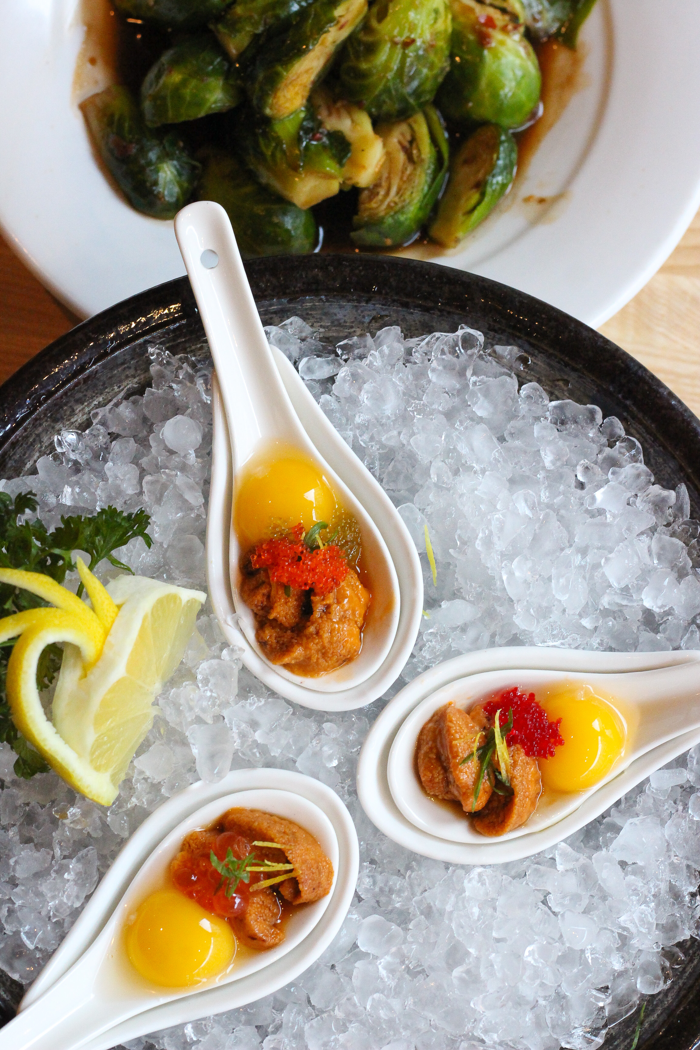 My first trip to Yoki was for a sushi-making class. Recently, the interior was revamped with modern furnishings, a long bar, and a koi mural. The dishes are designed and plated beautifully. The sashimi and nigiri is fresh and plump. My favorite was the uni spoons – fresh sea urchin, roe, and quail egg.